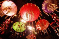 大小さまざまなつるし飾りと、和傘などで彩る幻想的な光景をぜひお楽しみください。