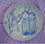 丸い磁板にお雛様を描いたかわいい染付飾りを外壁に飾ったり、