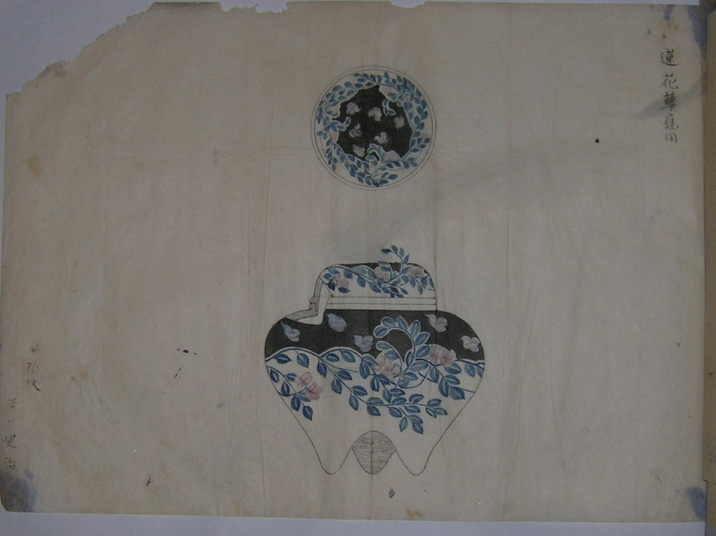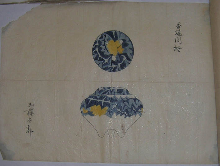 この図案帖は、明治38年〜39年の間に、瀬戸陶磁工商同業組合(明治32年設立)が図案研究を目的