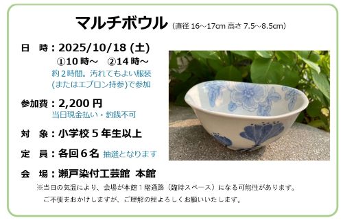 【予約抽選】染付体験教室